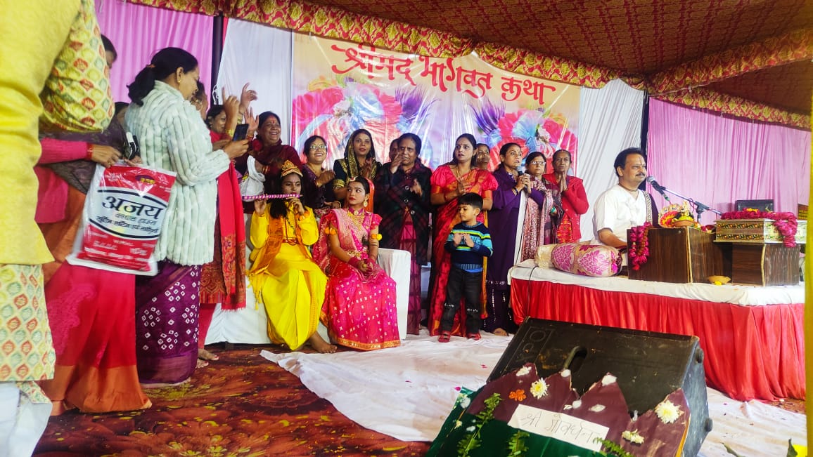 रामासरे जी की भजन मंडली ने सुन्दर भजन प्रस्तुत किये आओ मेरी सखियो मुझे मेहदी लगा दो मुझे श्याम सुंदर की दुल्हन बना दो इस भजन पर सभी भक्तों ने ख़ूब नृत्य किया | इस अवसर पर कथा मे प्रेम नारायण व्यास जी ,धर्म देव सिंह,निर्देश दीक्षित,राम कुमार सिंह ,श्याम सुन्दर शर्मा,नंदलाल गुप्ता, सिंह वीर सिंह,जितेन्द्र सिंह ,अजीत सोनी संजय सिंह,इंद्र प्रकाशजी,उमा प्रसाद पांडे,सुशील मोहन शर्मा,मुदित ,तनय सोनी,अथर्व राज मिश्रा,अनुज शुक्ला,रेखा श्रीवास्तव,निर्मला वर्मा ऋचा सचान आदि बहुत बड़ी संख्या में भक्तों ने भगवत नाम रस का रसास्वादन कर कथा का श्रवण किया।
