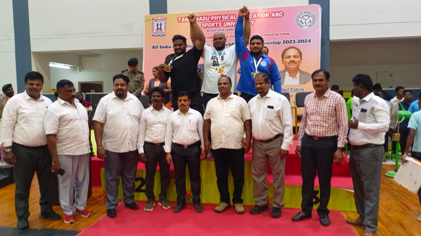 उत्तर प्रदेश डेस्क लखनऊ (आर एल पांडेय).चेन्नई स्थित तमिलनाडु शारीरिक शिक्षा एवं स्पोर्ट्स विश्वविद्यालय में हो रही अखिल भारतीय अंतर विश्वविद्यालय पॉवरलिफ्टिंग प्रतियोगिता में लखनऊ विश्वविद्यालय के दीन दयाल राजकीय महाविद्यालय सीतापुर के छात्र मनीष कुमार ने 120 किलोग्राम भार की श्रेणी में कल रजत पदक प्राप्त किया। प्रथम स्थान पर चेन्नई के पी कुमारम और तृतीय स्थान पर गुजरात के मोहम्मद हासिम रहें।