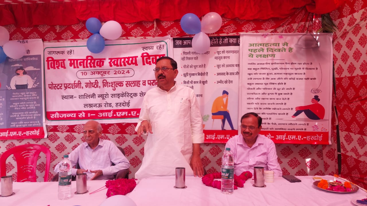 डिप्रेशन एवं एंजाइटी के कारण विश्व की अर्थव्यवस्था को 75 लाख करोड़ का नुकसान होता है! कार्यक्रम में वरिष्ठ चिकित्सक डॉक्टर अरुण मौर्य डॉक्टर सुरेश खड़े डॉक्टर आरपी गुप्ता डॉक्टर तिरुपति आनंद डॉक्टर संदीप कटियार समेत तमाम इंडियन मेडिकल एसोसिएशन से जुड़े चिकित्सक मौजूद रहे इंडियन मेडिकल एसोसिएशन के प्रति समर्पित डॉक्टर सी के गुप्ता की मुक्त कंठ से प्रशंसा की गई।