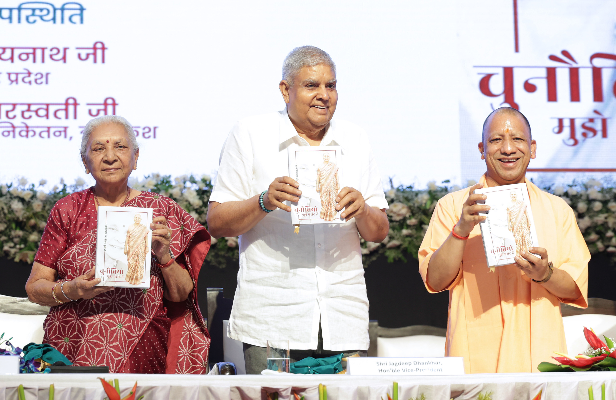डा पंकज जानी उच्च शिक्षा एवं विनय जोशी द्वारा लिखित पुस्तक के विमोचन समारोह की अध्यक्षता माननीय उपराष्ट्रपति श्री जगदीप धनखड़ एवं श्रीमती सुदेश धनखड़ विशिष्ट अतिथि योगी आदित्यनाथ जी उपमुख्यमंत्री श्री केशव प्रसाद मौर्य और श्री ब्रजेश पाठक, योगी जी की संपूर्ण कैबिनेट विशेषकर वित्त एवं संसदीय कार्य मंत्री श्री सुरेश कुमार खन्ना मंत्री श्री स्वतंत्र देव सिंह मंत्री श्री दया शंकर सिंह बन मंत्री श्री अरुण कुमार सक्सेना जी विधानसभा अध्यक्ष श्री सतीश महाना, श्री मनोज कुमार सिंह मुख्य सचिव उत्तर प्रदेश,डा विनय पाठक कुलपति कानपुर विश्वविद्यालय ए के त्यागी कुलपति काशी विद्यापीठ वाराणसी के अलावा डेढ़ दर्जन से ज्यादा कुलपति गण