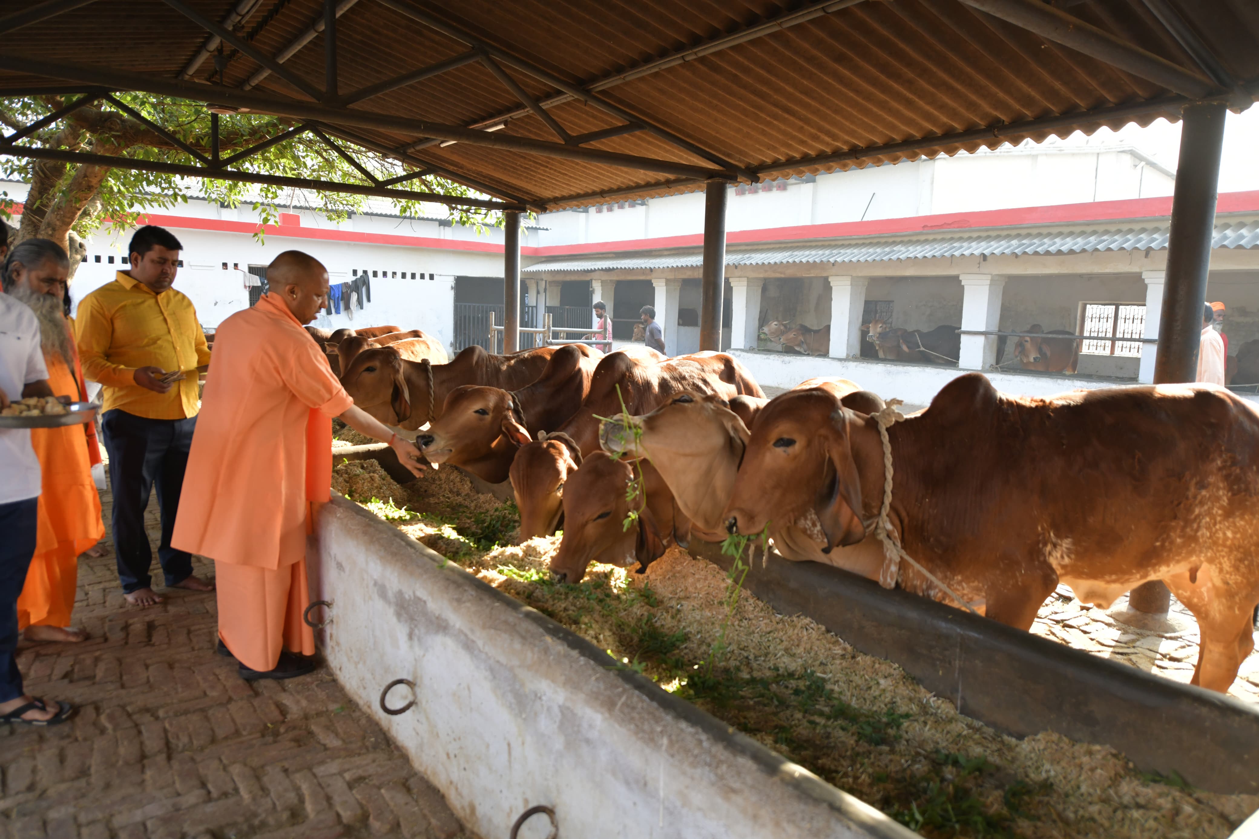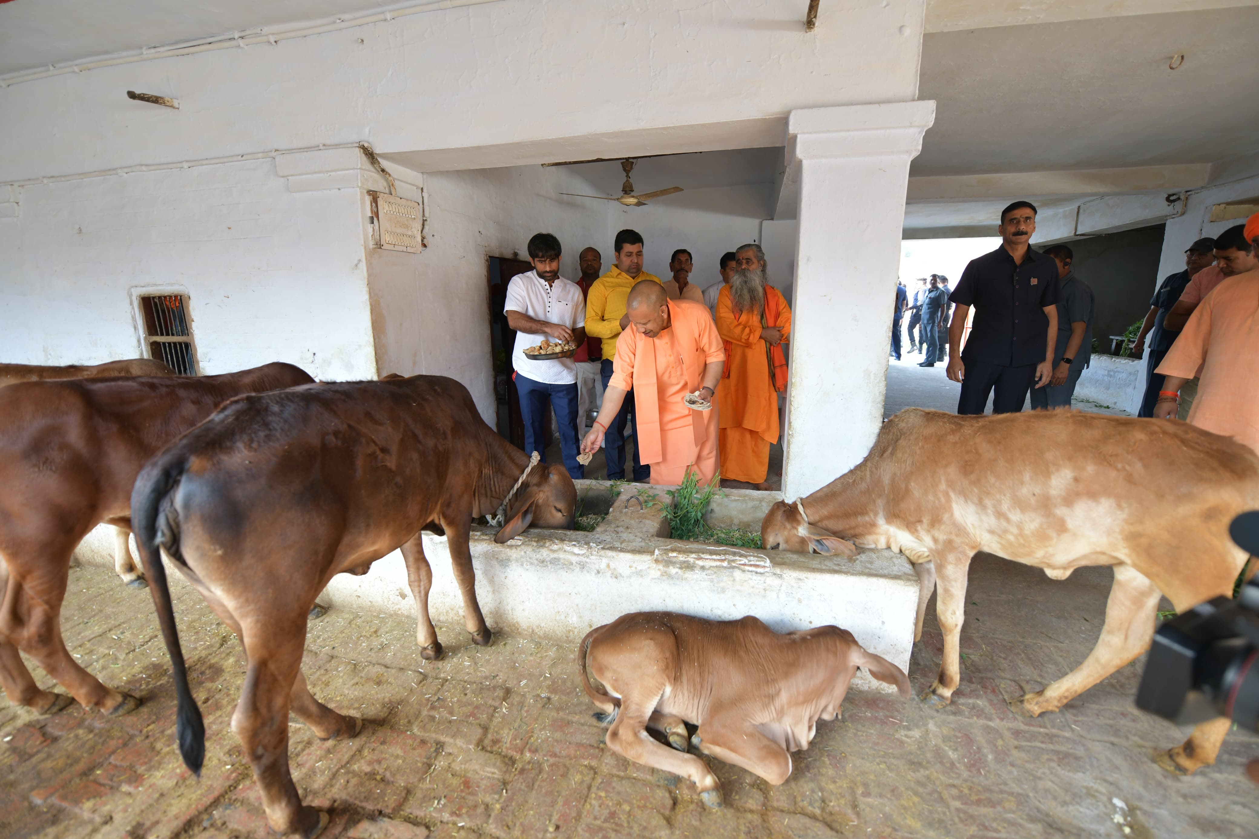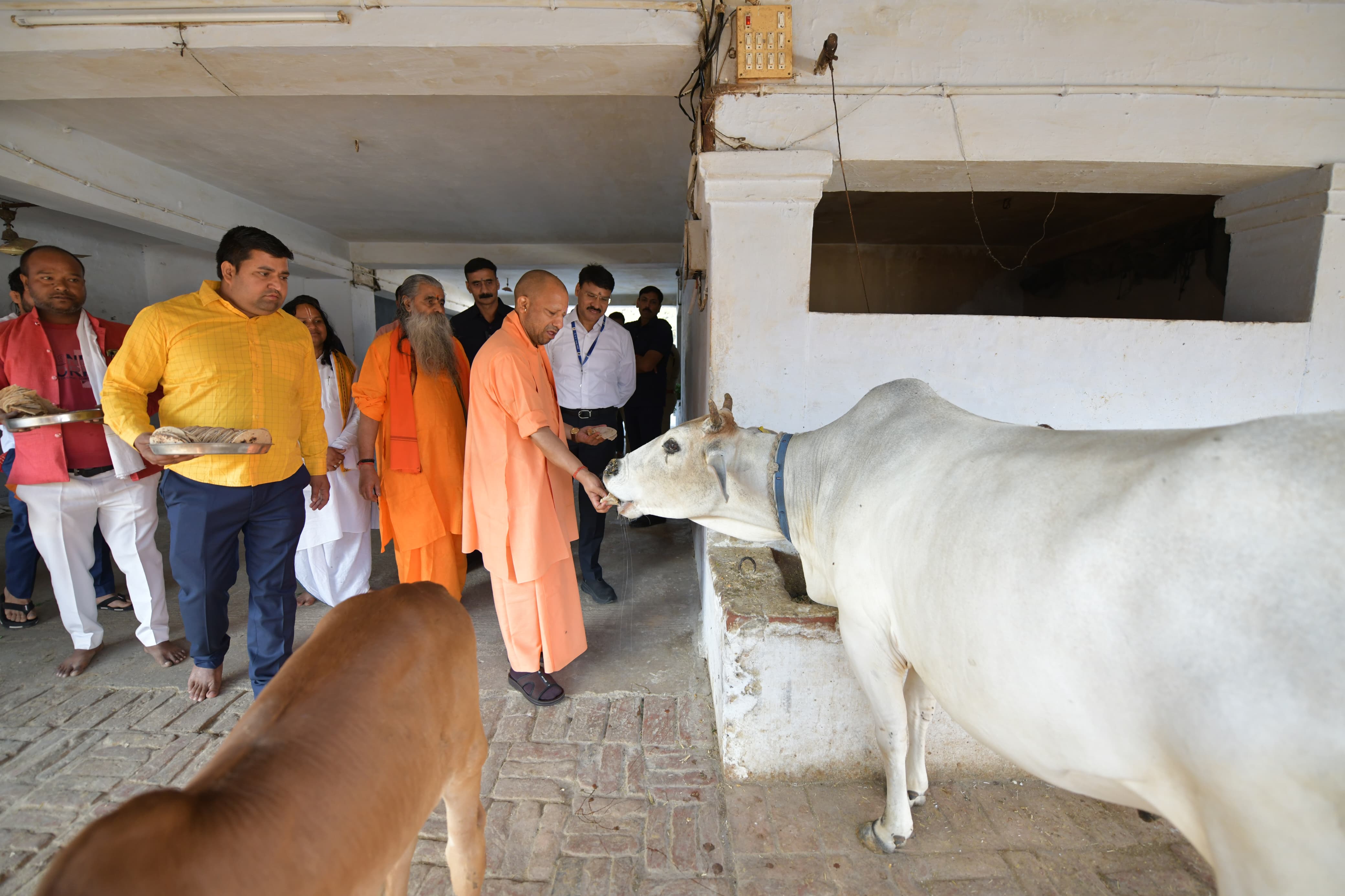 मंदिर परिसर में सीएम योगी ने की गोसेवा कर गायों को गुड़ खिलाया। सीएम योगी आदित्यनाथ जब भी शक्तिपीठ देवीपाटन मंदिर आते तो वहां की गौशाला में गौसेवा अवश्य करते है।