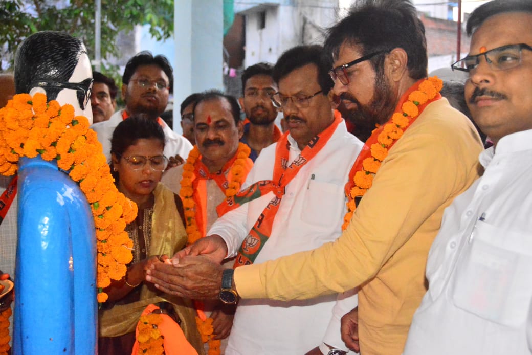 MLA O.P. Srivastava lit a lamp and garlanded the statue of Baba Saheb in Bastauli village on the eve of Baba Saheb's birth anniversary