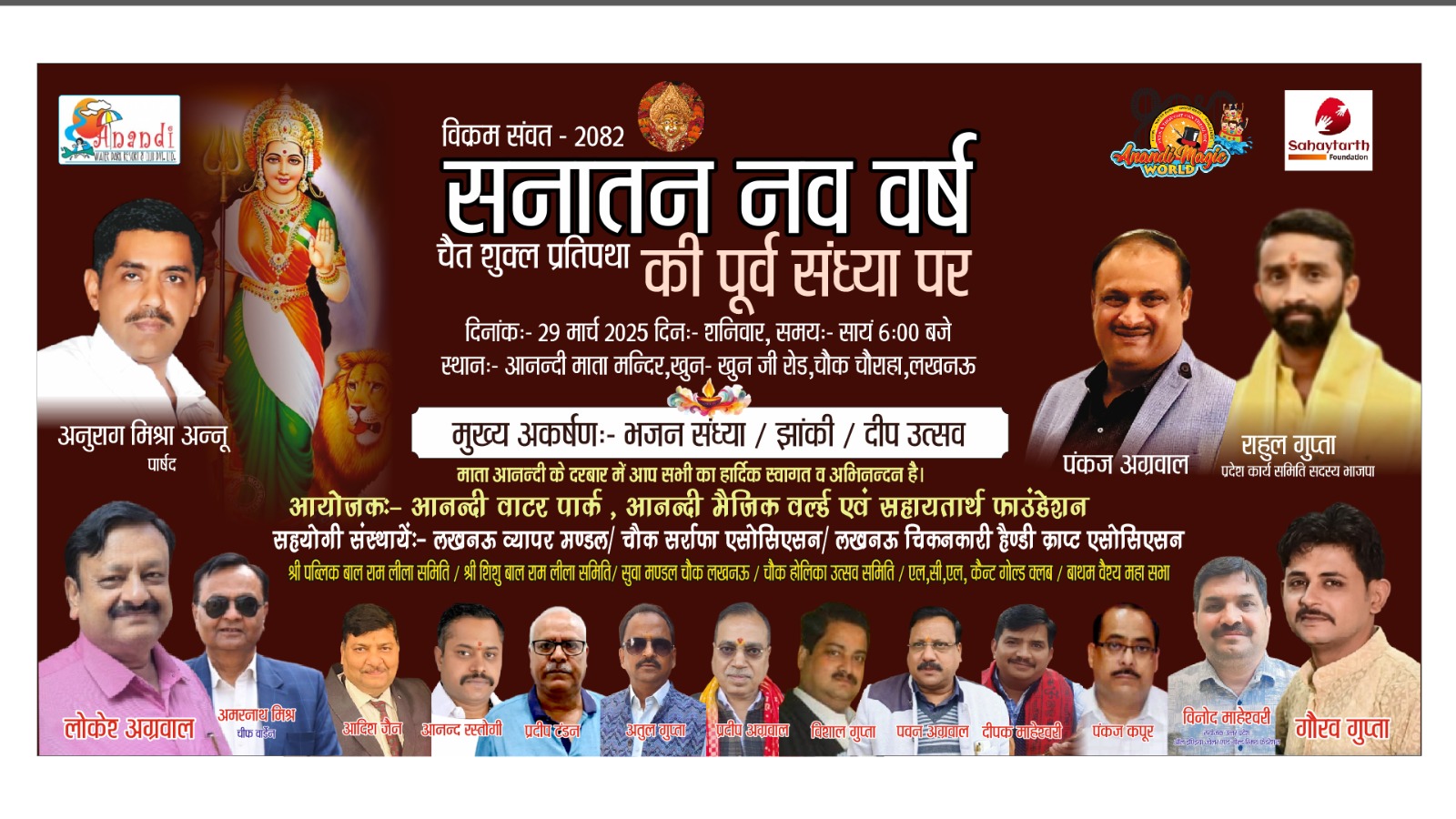 लखनऊ डेस्क (आर एल पाण्डेय)।नव संवत्सर की पूर्व संध्या पर चौक आनंदी माता मंदिर प्रांगण में 29 मार्च को शाम 6 बजे से भव्य कार्यक्रम आयोजित किया जाएगा हिन्दी नव वर्ष की पूर्व संध्या पर चौक आनंदी माता मंदिर प्रांगण में 29/03/25 शाम 6 बजे से एक भव्य कार्यक्रम आयोजित किया गया है। इस कार्यक्रम में 5001 दीप प्रज्वलन किया जाएगा, जो कि एक अद्वितीय और आकर्षक दृश्य होगा।