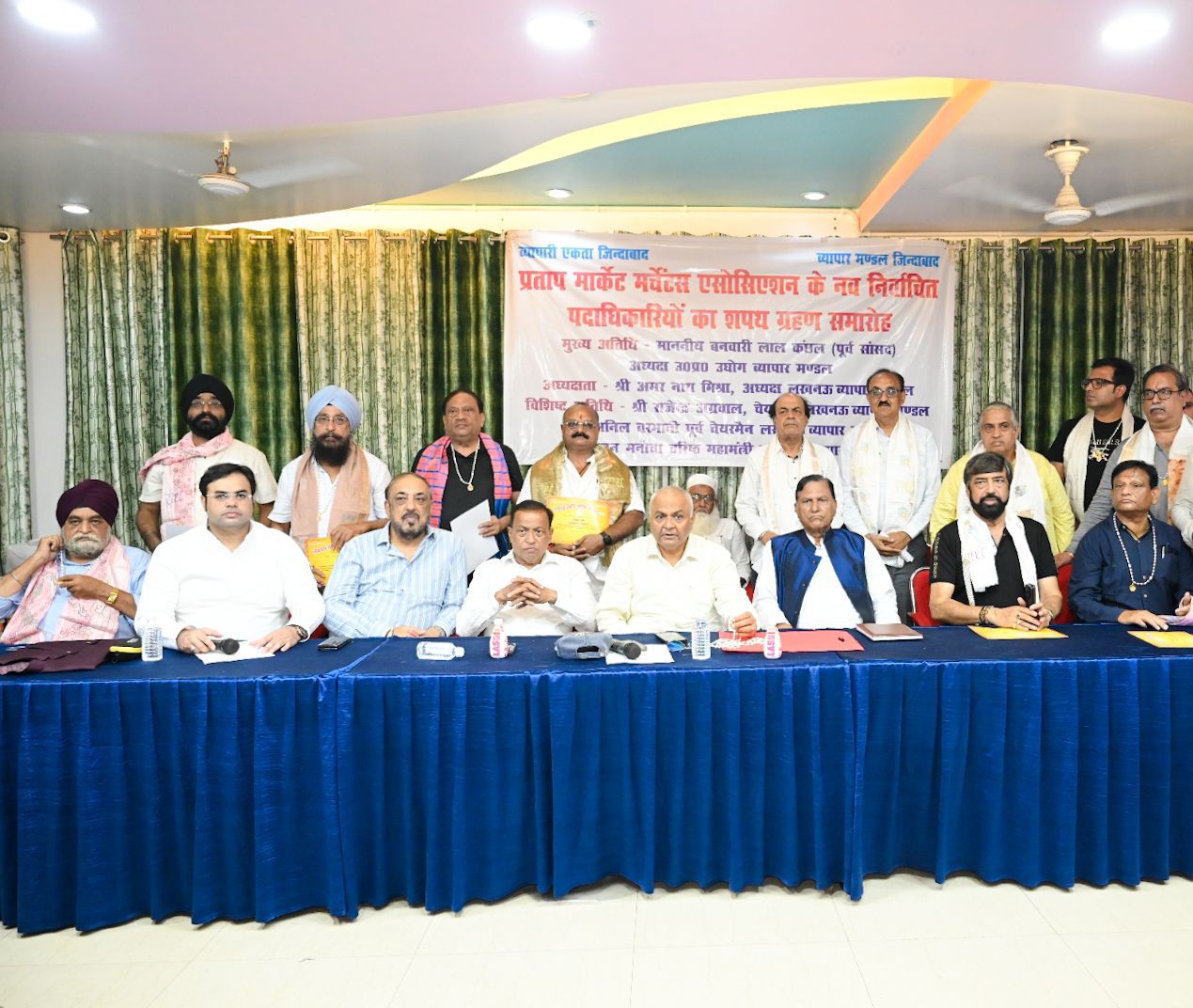 उत्तर प्रदेश डेस्क लखनऊ (आर एल पांडेय)। होटल सेवन सीज में प्रताप मार्केट मर्चेंट एसोसिएशन का शपथ ग्रहण संपन्न हुआ। कार्यक्रम की अध्यक्षता लखनऊ व्यापार मंडल के अध्यक्ष अमरनाथ मिश्रा और संचालन वरिष्ट महामंत्री पवन मनोचा ने किया। मुख्य अतिथि बनवारी लाल कंचल ,विशिष्ट चेयरमैंन राजेंद्र अग्रवाल ,अनिल वीरमानी ने शपथ दिलाई।