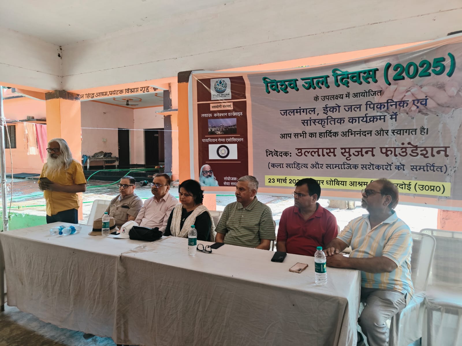 लखीमपुर-खीरी जनपद के चपरतला गांव की स्वयंसेवी संस्था 'सेवा सदन' के आमंत्रण पर तपोवन सिद्धाश्रम पहुंच रहे दल में आकाशवाणी लखनऊ व बरेली की पूर्व निदेशक मीनू खरे,वरिष्ठ पत्रकार नागेंद्र बहादुर सिंह, लखनऊ कनेक्शन वर्ल्डवाइड के अनिल शुक्ला,पर्यावरण विद् सुनील मिश्रा, एफ एम लखनऊ के आरजे शोभित गुप्ता आदि ने विचार व्यक्त करते हुए जल संरक्षण पर और नदियों की स्वच्छता पर जोर दिया और सामाजिक दायित्वों का बोध कराया।
