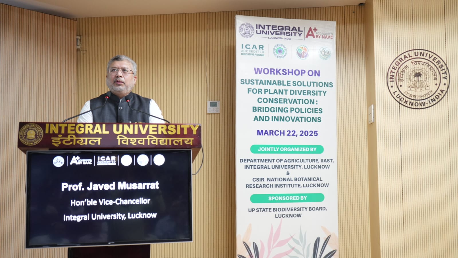 कार्यक्रम के प्रारम्भ मे प्रो. मोहम्मद हारिस सिद्दीकी, कुलसचिव, इंटीग्रल विश्वविद्यालय, ने मुख्यअतिथि, विशेषज्ञो एवं प्रतिभागियों का स्वागत एवं अभिनन्दन किया । प्रो. वहाजुल हक, डीन, अनुसंधान एवं विकास, इंटीग्रल विश्वविद्यालय, ने जैव विविधता पर अपने विचार साझा किया । श्री प्रभाकर बूरा, सचिव, उत्तर प्रदेश राज्य जैव विविधता बोर्ड ने अपने संबोधन में कार्यशाला के उद्देश्य एवं महत्व पर प्रकाश डाला और प्रो. जावेद मुसर्रत, कुलपति, इंटीग्रल विश्वविद्यालय ने कृतिम बुद्धिमत्ता एवं ड्रोन तकनीकी से जैव विविधता को संरक्षित करने पर जोर दिया तथा उन्होंने कहा कि अगर जैव विविधता को संरक्षित नहीं किया गया