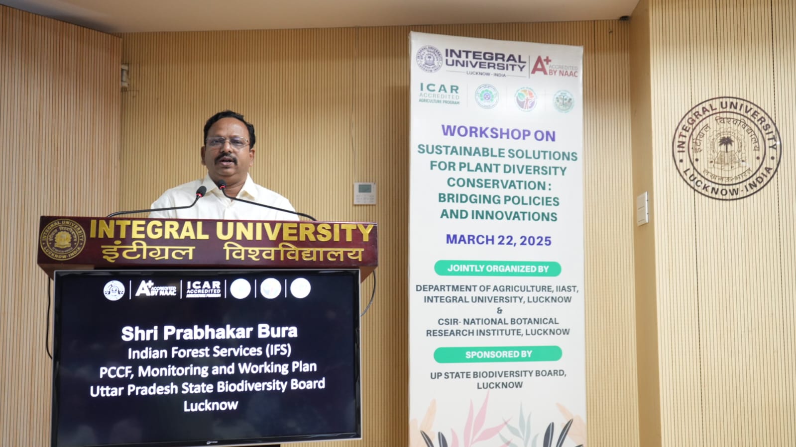 पर्यावरण विज्ञान विभाग, इंटीग्रल यूनिवर्सिटी, लखनऊ के प्रो. एम. ए. खालिद ने अपने प्रस्तुतीकरण में जैव विविधता और आजीविका के लिए नीतिगत ढांचे का समन्वय के बारे में बताया । डॉ. सुधांशु शेखर दाश वैज्ञानिक-एफ, अतिरिक्त निदेशक भारतीय वनस्पति सर्वेक्षण पर्यावरण, वन एवं जलवायु परिवर्तन मंत्रालय, कोलकाता ने अपने सम्बोधन में प्रजाति वर्गीकरण के दृष्टिकोण एवं पादप जैव विविधता संरक्षण में इसकी भूमिका के बारे में विस्तार में चर्चा की ।