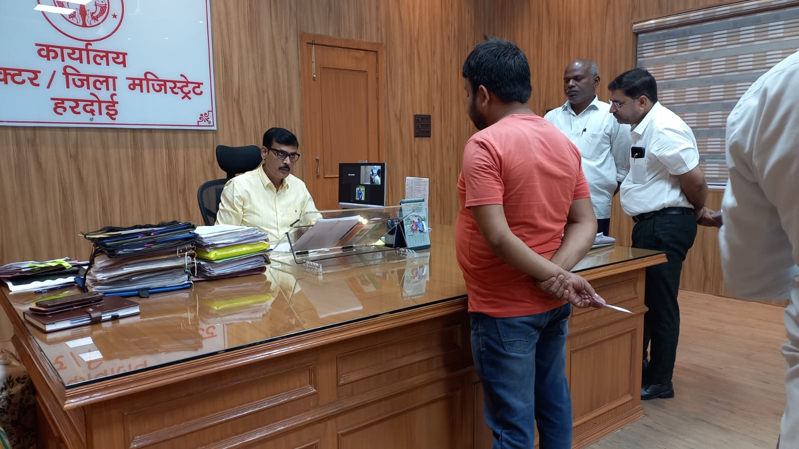 हरदोई(अम्बरीष सक्सेना) जनपद में शिकायत निस्तारण के लिए लागू नई पर्ची व्यवस्था के अन्तर्गत जिलाधिकारी मंगला प्रसाद ने आज अपने कलेक्टेªट कार्यालय में फरियादियों की शिकायतों का सुना तथा शिकायतों का शीघ्र निस्तारण का आश्वासन दिया। जिलाधिकारी ने कहा कि पर्ची के रूप में शिकायतकर्ता के पास प्रमाण होगा और उन्हें शिकायत निस्तारण के लिए भटकना नही पटेगा तथा जन शिकायतों के निस्तारण में तेजी आयेगी। इस नई व्यवस्था से शिकायतकर्ता काफ़ी खुश नजर आये।