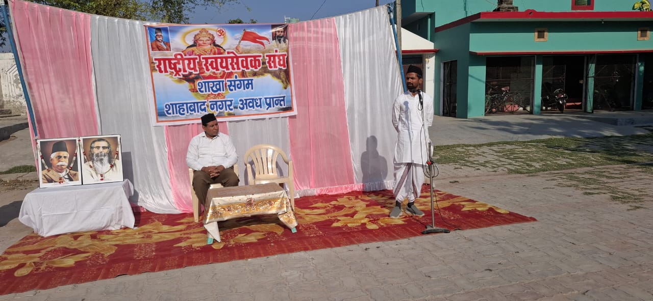 अपने कार्य को करते हुए राष्ट्र की उन्नति को भी ध्यान मे रखते हो कार्यक्रम मे जिले से पधारे सह जिला संपर्क प्रमुख गिरीश जी जिला समरसता प्रमुख नीरज जी नगर शाहाबाद से पधारे खंड