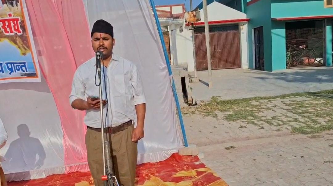 कार्यक्रम मे मुख्य अतिथि के रूप मे जिले से पधारे जिला प्रचारक रवि प्रकाश ने स्वयंसेवको के बीच अपने विचार रखते हुए बताया