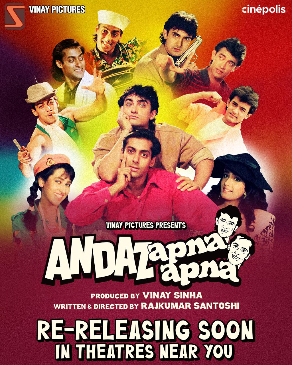 सलमान खान और आमिर खान की कल्ट क्लासिक फिल्म अंदाज अपना अपना 25 अप्रैल 2025 को सिनेमाघरों में फिर से रिलीज़ हो रही है। 1994 में आई इस कॉमेडी फिल्म को 4के और डॉल्बी 5.1 में रीस्टोर किया गया है। राजकुमार संतोषी के निर्देशन में बनी इस फिल्म में रवीना टंडन, करिश्मा कपूर, परेश रावल और शक्ति कपूर भी नजर आएंगे। फिल्म के वितरक विनय पिक्चर्स के प्रोड़यूसर विनय सिन्हा की बेटी प्रीति सिन्हा दुबारा रीलीज कर रही है। लोगों ने प्रीति को राय दी है कि इसका पार्ट-२ भी बनना चाहिए। पब्लिक डिमांड पर इसका दूसरा पार्ट बने जिसमें नए लोगों शामिल होंगे। प्रीति इसके लिए बड़ी मेहनत कर रही है इसकी लांचिग पूरे वर्ल्ड वाइड होगी। प्रीती के साथ उनके भाई अमोद बहन नम्रता ने कहा कि यह री रिलीज फिल्म एक सच्ची श्रद्धांजलि है पिता के प्रति।