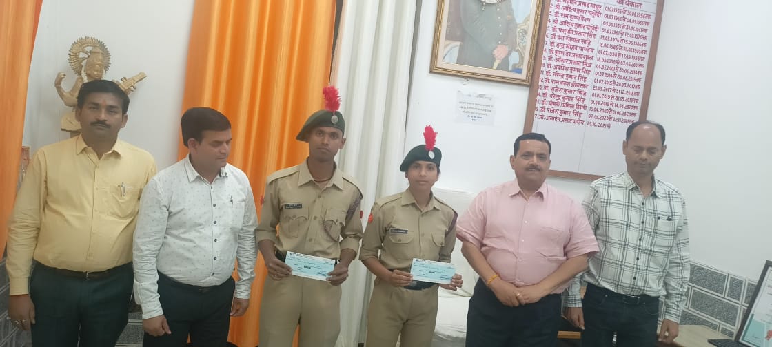 बलरामपुर में संचालित एन सी सी इकाई के दो कैडेटों सार्जेंट दुर्गेश कुमार व शिखा तिवारी को मुख्यमंत्री स्कॉलरशिप प्रदान किया गया