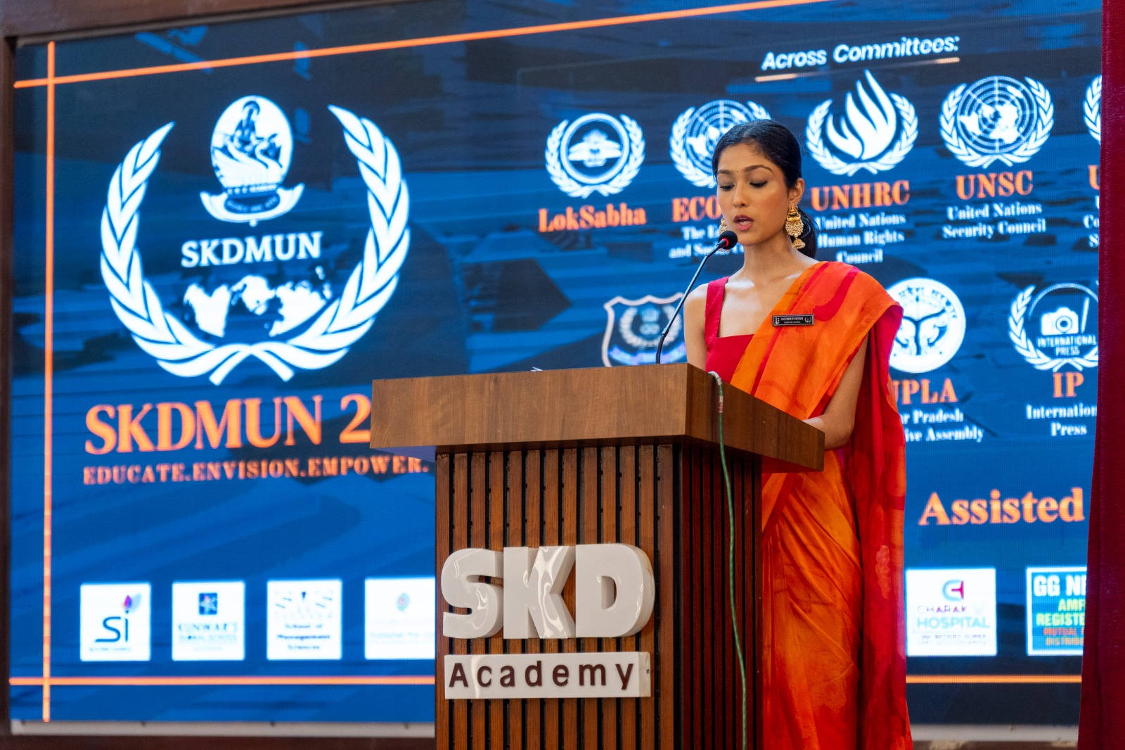 समारोह की शुरुआत SKD ग्रुप के निदेशक श्री मनीष सिंह के प्रेरक संबोधन से हुई। उन्होंने युवा प्रतिनिधियों को संबोधित करते हुए कहा कि "विश्व के समक्ष खड़ी जटिल चुनौतियों का समाधान युवा नेतृत्व में ही छिपा है। संवाद, सहयोग और कूटनीति – यही वे साधन हैं जिनसे हम एक बेहतर दुनिया की दिशा में आगे बढ़ सकते हैं।