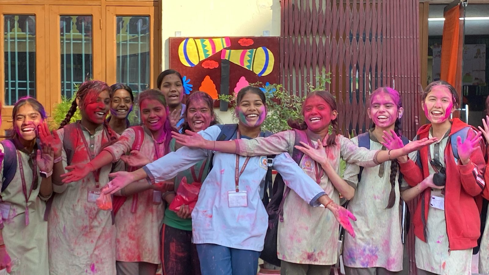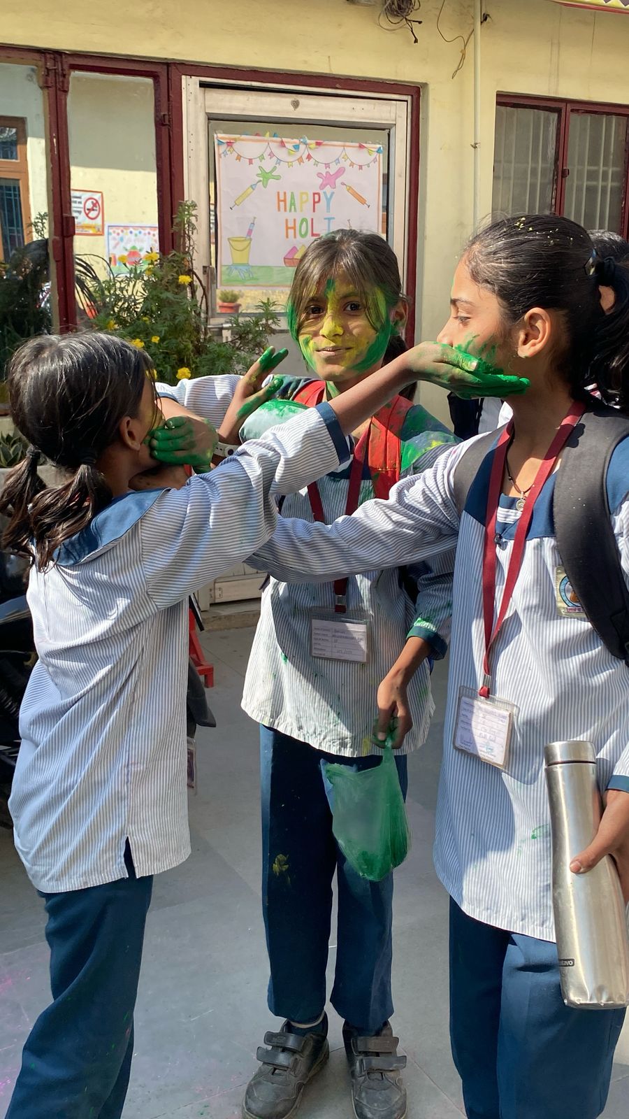 विद्यार्थियों ने एक-दूसरे को रंग लगाकर होली का आनंद लिया