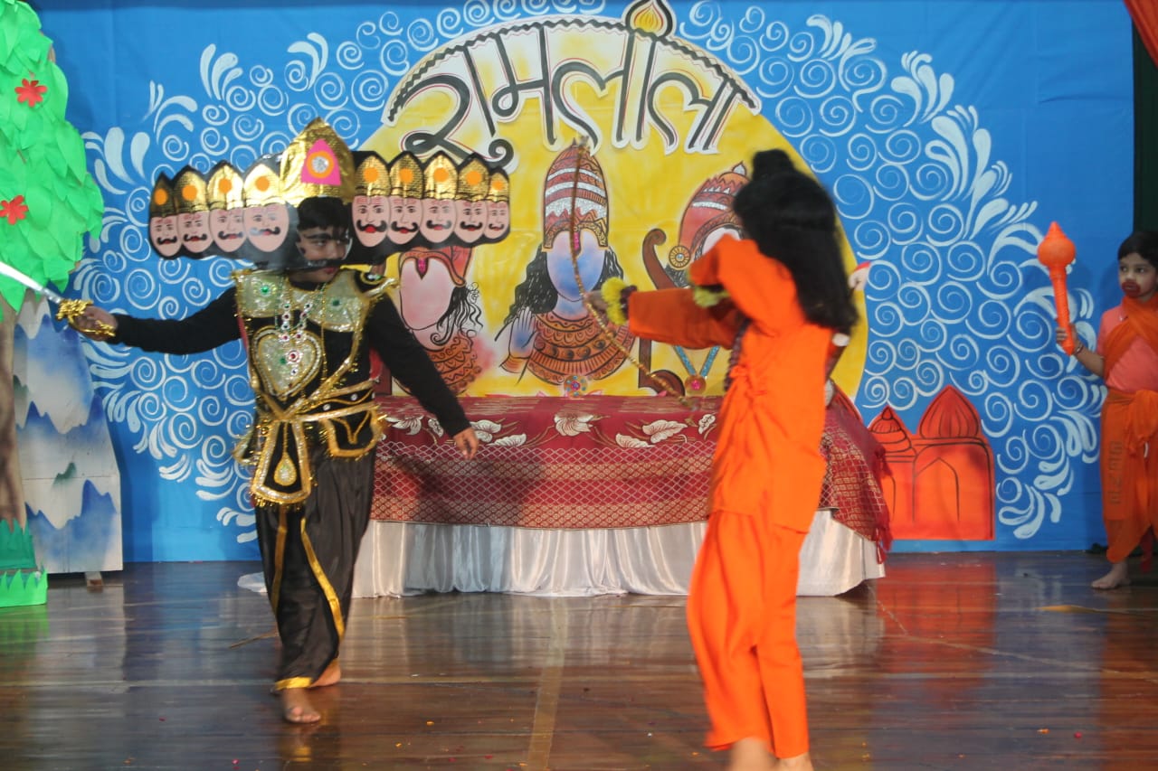 छात्रों ने श्रीराम, सीता, लक्ष्मण, हनुमान और रावण जैसे पात्रों को चित्रित करते हुए उत्साह और शालीनता के साथ प्रदर्शन किया