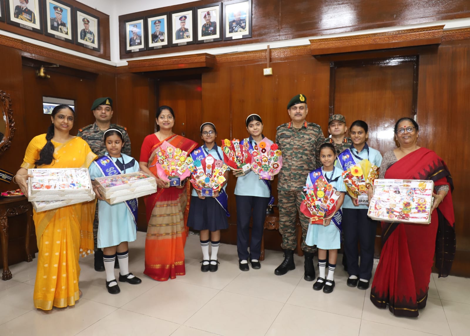 विद्यालय की निदेशक श्रीमती सरिता जायसवाल और प्रधानाचार्या श्रीमती अनुपम सिंह के सानिध्य में छात्राओं ने लेफ्टिनेंट जनरल मुकेश चड्ढा, चीफ ऑफ स्टॉफ, सेन्ट्रल कमाण्ड को रक्षा सूत्र बांधकर सेना के प्रति अपना सम्मान प्रकट किया।