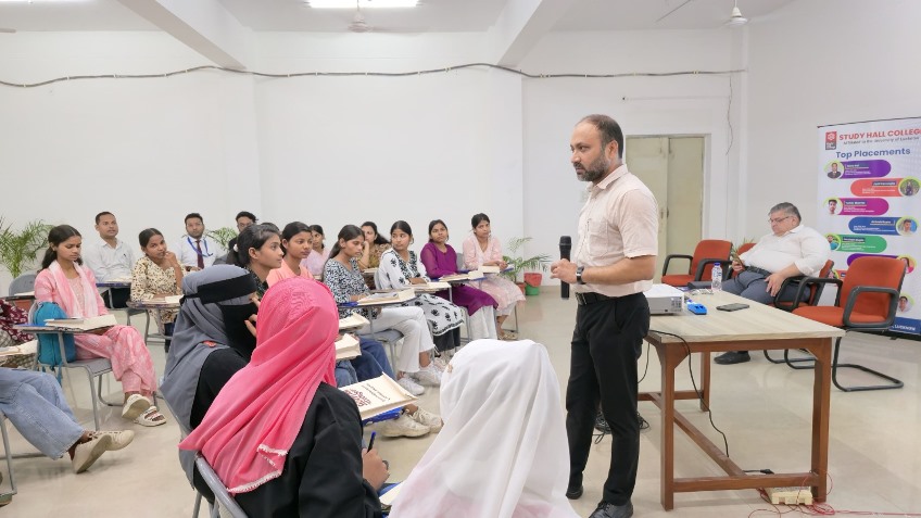 Addressing the audience, Dr. Himanshu Singh, Director of Study Hall College, highlighted the significance of SWOT analysis (Strengths, Weaknesses, Opportunities, Threats) in career decision-making. He stated,“A well-executed SWOT analysis allows students to gain a deeper understanding of themselves. It equips them to choose career paths that align with their strengths and long-term goals, while also considering external opportunities and challenges.”