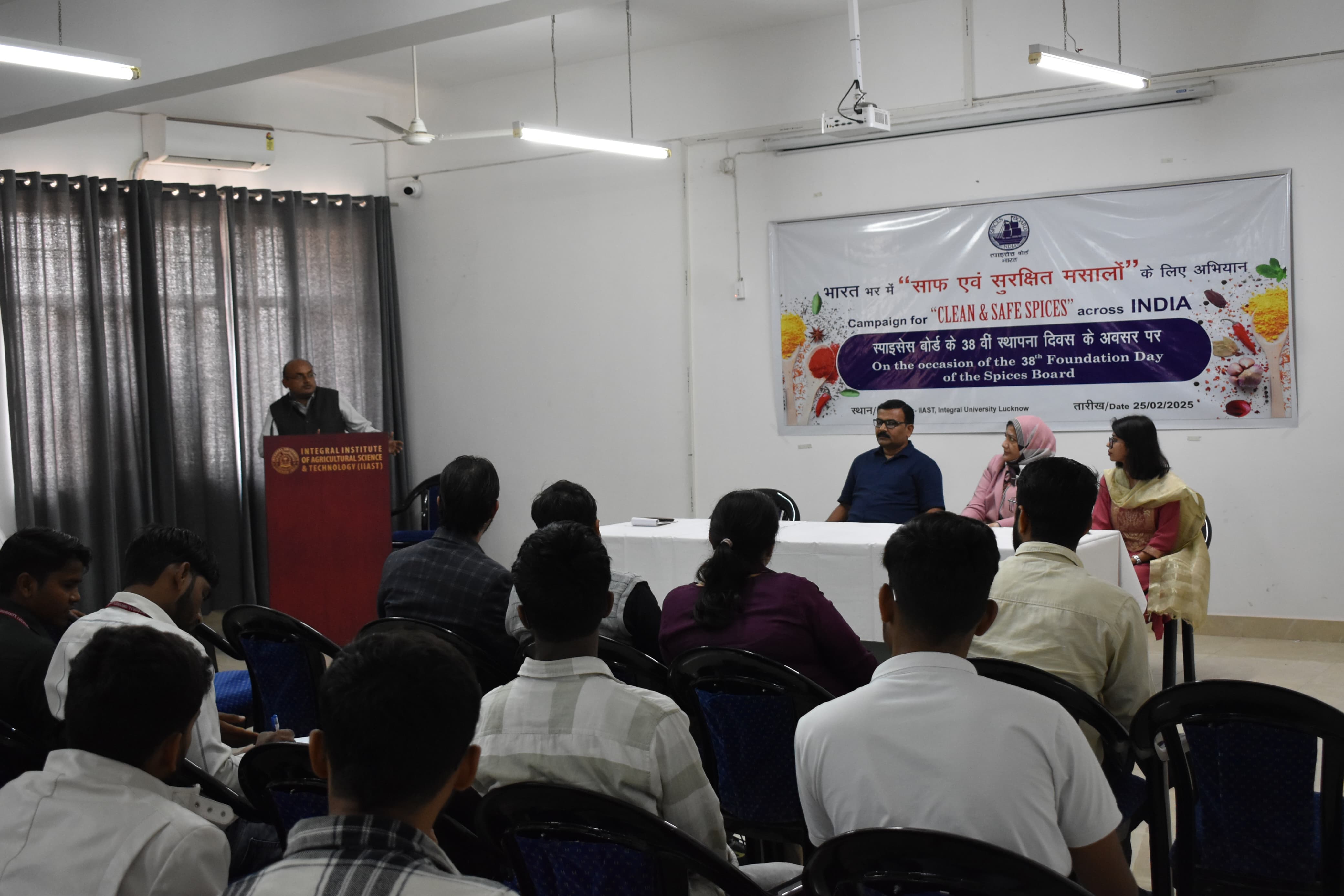 आई.आई.ए.एस.टी, इंटीग्रल विश्वविद्यालय लखनऊ के कृषि विभाग की प्रमुख प्रो. सबा सिद्दीकी ने कार्यक्रम का उद्घाटन किया। मसाला बोर्ड के सहायक निदेशक श्री संदीप सिंह यादव ने मसाला बोर्ड के कार्यों और मसाला उद्योग में स्वच्छता के उच्च मानकों को बनाए रखने के महत्व पर जोर दिया। उन्होंने कहा, “हमारे नागरिकों के स्वास्थ्य को सुनिश्चित करने के लिए स्वच्छता और सुरक्षा अत्यंत महत्वपूर्ण हैं।” असफाक ने मसाला खाद्य सुरक्षा नियमों और उनके अनुपालन और महत्व पर व्याख्यान दिया, जबकि डॉ. कल्पना बिष्ट, सहायक प्रोफेसर, आई.आई.ए.एस.टी ने आई.पी.एम. मसालों के उत्पादन और उनके महत्व पर व्याख्यान दिया।