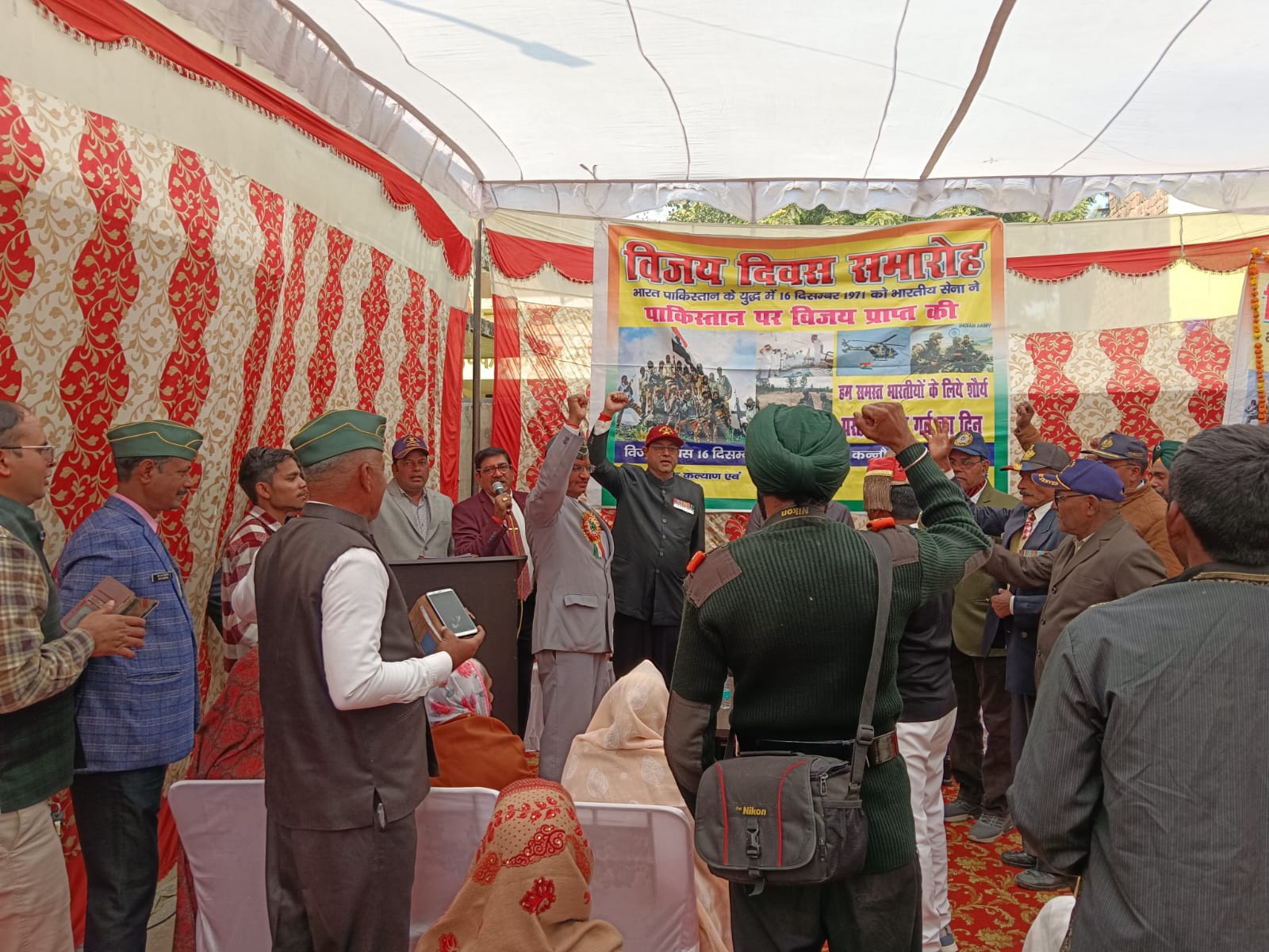 कर्नल रोहित भटारा ने विजय दिवस पर प्रकाश डालते हुए सभी को बधाई दी। युद्ध में भाग लिये और जंग में बहादुरी का परिचय देकर लडाई मे मिली सफलता के बारे में बताया। कर्नल बी०एस० तोमर ने भी अपने विचार रखे तथा सभी पूर्व सैनिको वीर नारियो के प्रति संवेदना व्यक्त कर सदैव मदद के लिए तैयार रहने का अश्वासन दिया। सूबेदार एस०के० चन्देल ने विजय दिवस पर प्रकाश डालते हुए कहा कि हम सबके लिए ये गौरव की बात है कि वीर सैनिको ने हमे विजय दिलायी। मैं उन सभी शहीद सैनिको का स्मरण करता हूँ जिन्होने युद्ध मे अपने प्राणों की बाजी लगा दी।