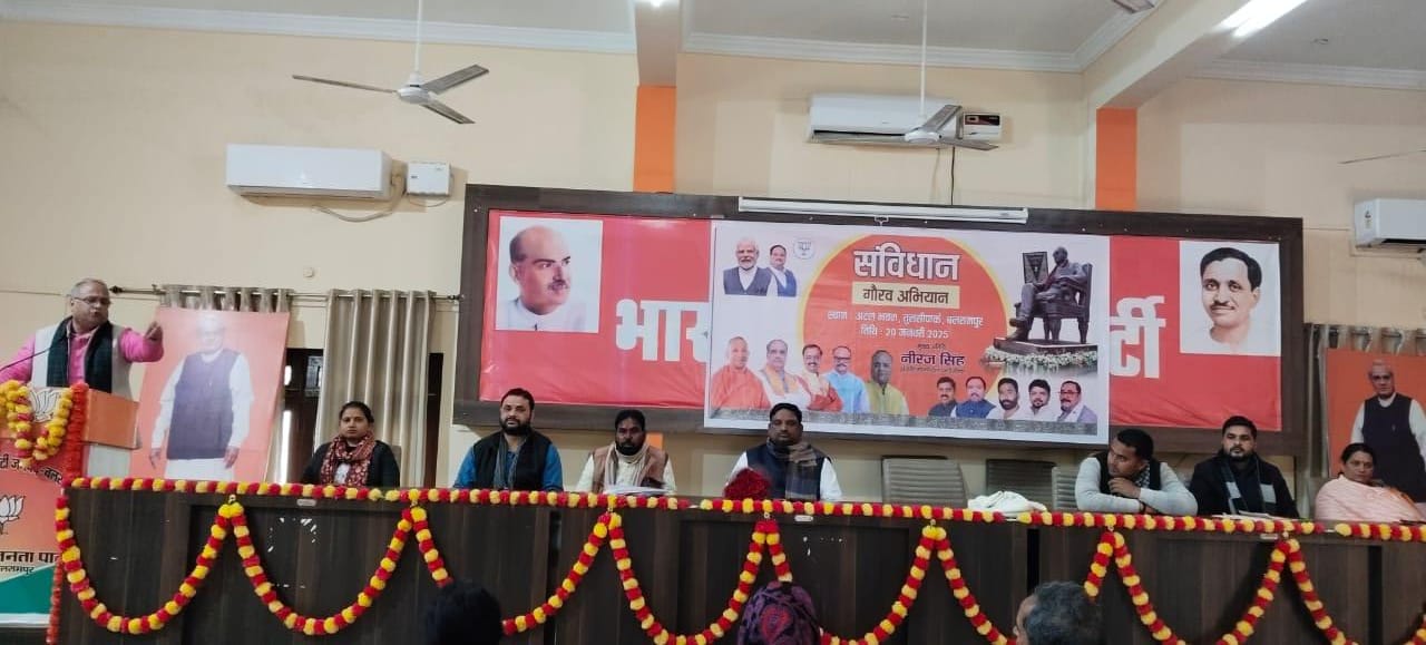 कोई भी व्यक्ति किसी के अधिकारों का हनन नहीं कर सकता है। संविधान के माध्यम से लोग न्याय प्राप्त कर सकते हैं। कार्यक्रम की अध्यक्षता भाजपा जिलाध्यक्ष प्रदीप सिंह ने की। इस अवसर पर जिला उपाध्यक्ष बृजेन्द्र तिवारी, जिला महामंत्री वरूण सिंह मोनू, बिंदू विश्वकर्मा, अनुसूचित मोर्चा जिलाध्यक्ष शिव कुमार वाल्मीकि, संदीप वर्मा, ललिता तिवारी, अवधेश तिवारी तरूण, साधना पाण्डेय, सुधा पाण्डेय, निर्मल सिंह, सोनू गौतम व मनोज आर्य सहित तमाम कार्यकर्ता मौजूद थे।