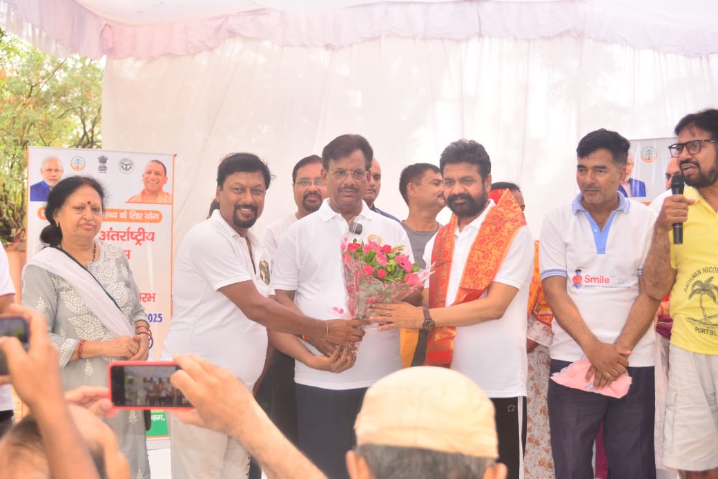 एकसाथ होना।" यह हमारे शरीर, मन और आत्मा को एक साथ जोड़ने का एक तरीका है। यह जीवन जीने का एक तरीका है जो हमें शारीरिक और मानसिक दोनों रूप से स्वस्थ रहने में मदद करता है। यह बात लखनऊ पूर्वी विधानसभा के विधायक ओ.पी. श्रीवास्तव ने रविवार सुबह 11 वें अंतर्राष्ट्रीय योग दिवस-2025, के उपलक्ष्य में योग सप्ताह के उद्घाटन सत्र में स्वर्ण जयंती पार्क में कही। "योगा फॉर वन अर्थ वन हेल्थ" विषय पर आयोजित इस कार्यक्रम में उत्तर प्रदेश सरकार के स्वतंत्र प्रभार राज्य मंत्री आयुष कल्याण विभाग डॉ. दयाशंकर मिश्र दयालु जी की भी उपस्थिति रही।