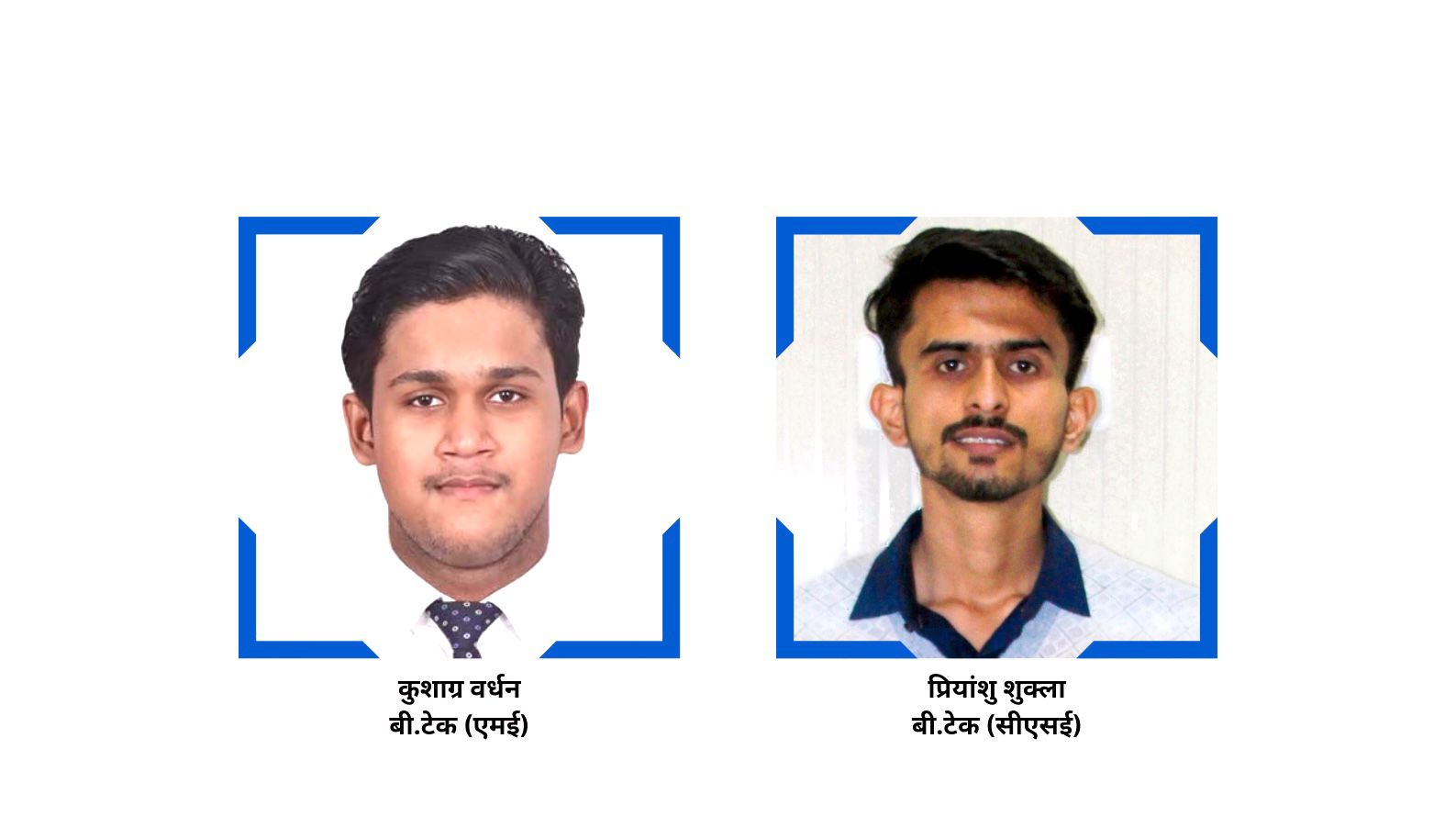 प्लेसमेंट सेल इंचार्ज डॉ. हिमांशु पांडेय ने बताया कि 2023 बैच के बीटेक छात्र प्रियांशु शुक्ला का चयन आईआईटी रोपड़ में एमटेक, कंप्यूटर साइंस इंजीनियरिंग ब्रांच के लिए एवं 2024 बैच के बीटेक छात्र कुशाग्र वर्धन का चयन आईआईटी जोधपुर में एमटेक, थर्मो फ्लूइड ब्रांच के लिए हुआ है।