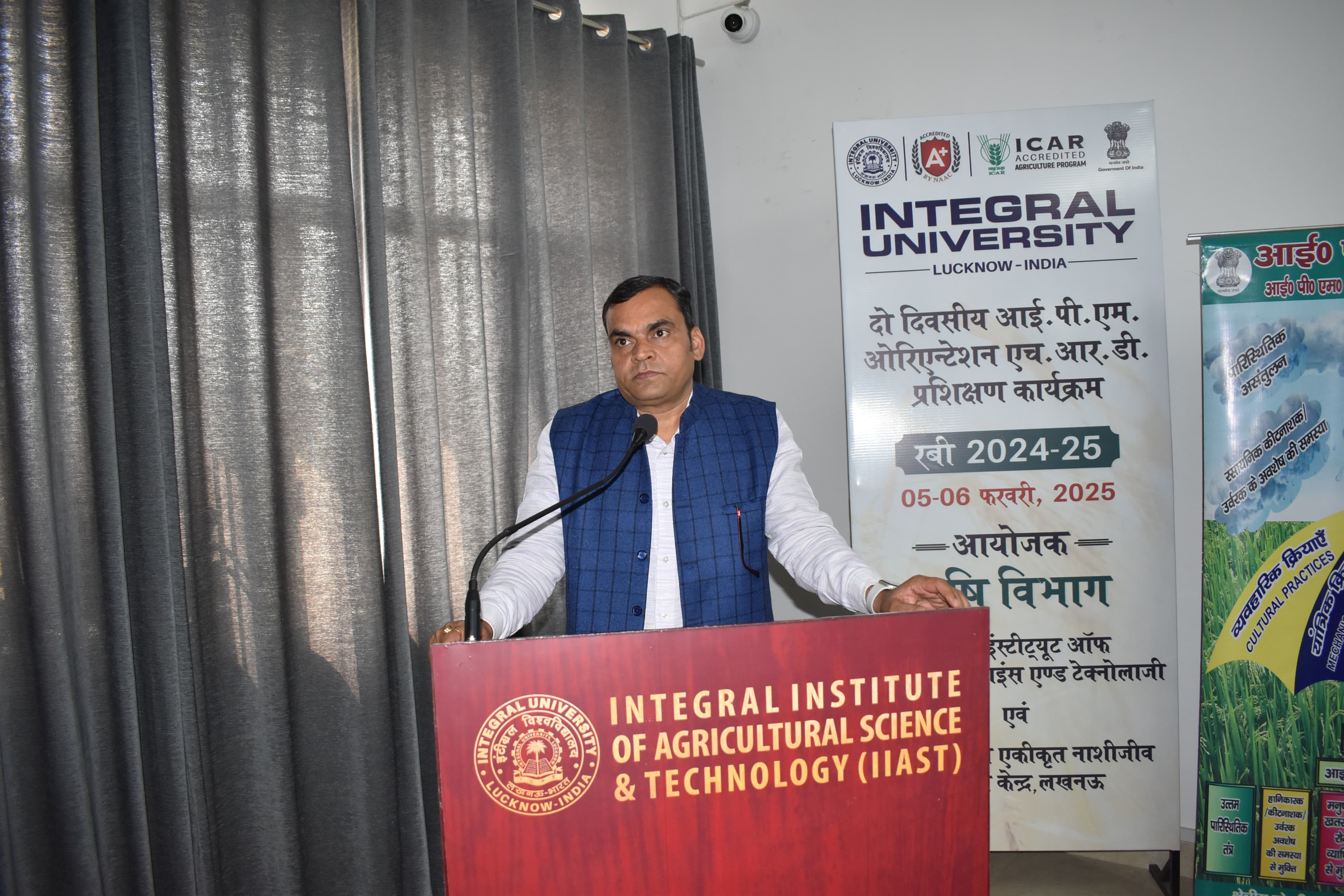 लखनऊ: भारत सरकार , कृषि एवं किसान कल्याण मंत्रालय, वनस्पति संरक्षण, संगरोध एवं संग्रह निदेशालय के उप कार्यालय क्षेत्रीय केन्द्रीय एकीकृत नाशीजीव प्रबंधन केंद्र, लखनऊ द्वारा इंटीग्रल इंस्टिट्यूट ऑफ़ एग्रीकल्चरल साइंस एंड टेक्नोलॉजी, इंटीग्रल विश्व विद्यालय, लखनऊ में दो दिवसीय आई. पी. एम. ओरिएंटेशन एच. आर. डी. प्रशिक्षण कार्यक्रम का शुभारम्भ हुआ I रीजनल सेन्ट्रल आई. पी. एम. सेंटर के प्रभारी एवं संयुक्त निदेशक डॉ. ज्ञान प्रकाश सिंह तथा इंटीग्रल विश्वविद्यालय के कृषि विभाग की विभागाध्यक्ष प्रो. सबा सिद्दीकी एवं अन्य अधिकारियों ने दीप प्रज्ज्वलित कर कार्यक्रम का शुभारम्भ किया I