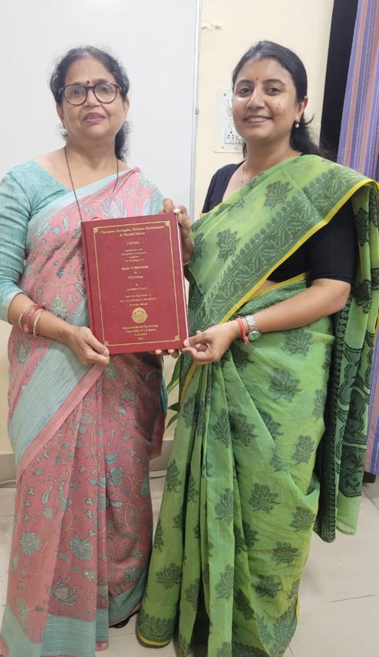 प्रोफेसर मधुरिमा प्रधान, पूर्व विभागाध्यक्ष, मनोविज्ञान विभाग एवं संस्थापक निदेशक, हैप्पी थिंकिंग लैबोरेट्री, लखनऊ विश्वविद्यालय, लखनऊ, एवं सहायक शोध परिवेक्षक, प्रोफेसर विवेक अग्रवाल, विभागाध्यक्ष, मानसिक चिकित्सा विभाग, किंग जॉर्ज चिकित्सा विश्वविद्यालय, लखनऊ के निर्देशन में किए गए इस शोध में अवसाद एवं चिंता के 18 वर्ष से 40 वर्ष की आयु वाले 60 मरीजों को सम्मिलित किया गया। साथ ही साथ 60 मानसिक रूप से स्वास्थ प्रायोज्यों को भी इस शोध में शामिल कर के एक तुलनात्मक अध्ययन किया गया। इस शोध के माध्यम से बताया गया की प्रत्येक व्यक्ति में बुद्धि, साहस, मानवता, न्याय, संयम और उत्कृष्टता के छ: सद्गुण और उनसे जुड़ी 24 चारित्रिक शक्तियां होती हैं जिनमे से 3 से 5 शक्तियां उनकी हस्ताक्षर शक्तियां होती हैं।