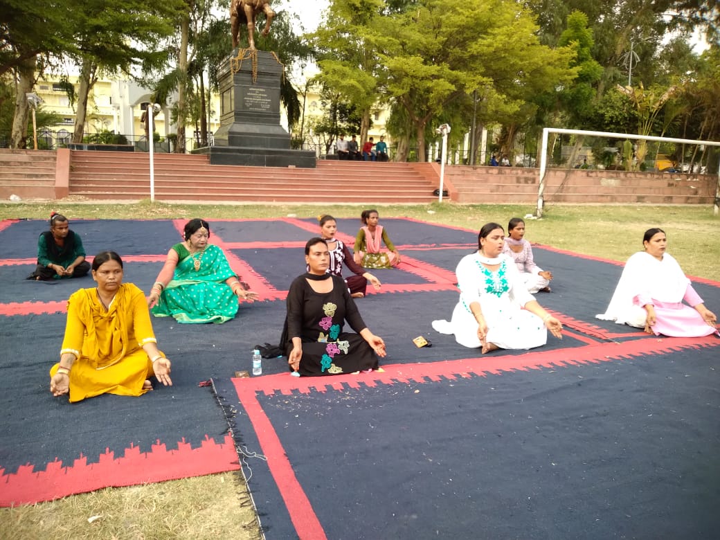 कि यह समुदाय भी समाज का विशेष अंग है, योग द्वारा स्वास्थ्य की धारा से जोड़ने के लिये इस शिविर का आयोजन किया गया है। आगे डॉ यादव ने बताया कि भिन्न भिन्न रोगों से बचाव के लिए अलग अलग आसनों और प्राणायाम का अभ्यास कराया गया। स्ट्रेस के प्रबंधन के लिए वीरासन, बालासन, त्रिकोणासन, पश्चिमोतासन के साथ अनुलोम विलोम प्राणायाम का अभ्यास कराया गया।मधुमेह के बचाव के लिए कटिचक्रासन, पादहस्तासन, भुजंगासन, धनुरासन ,