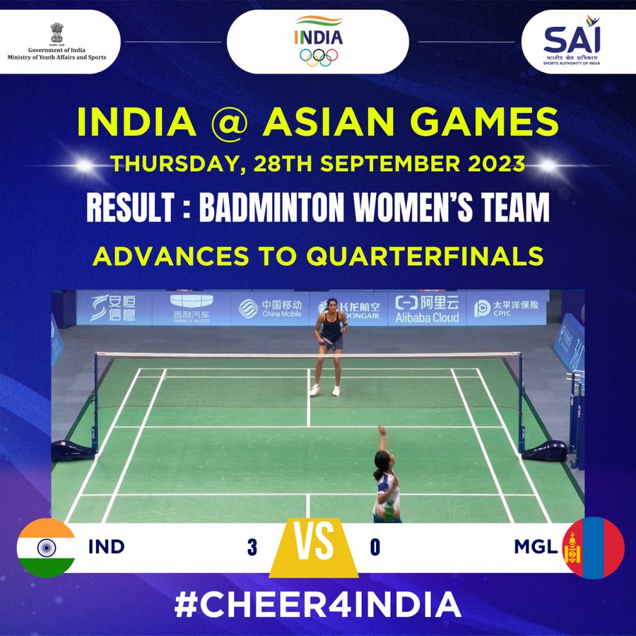 Asian Games 2023 Badminton : मंगोलिया को 3-0 से हराकर Asian Games में भारत क्वार्टर फाइनल