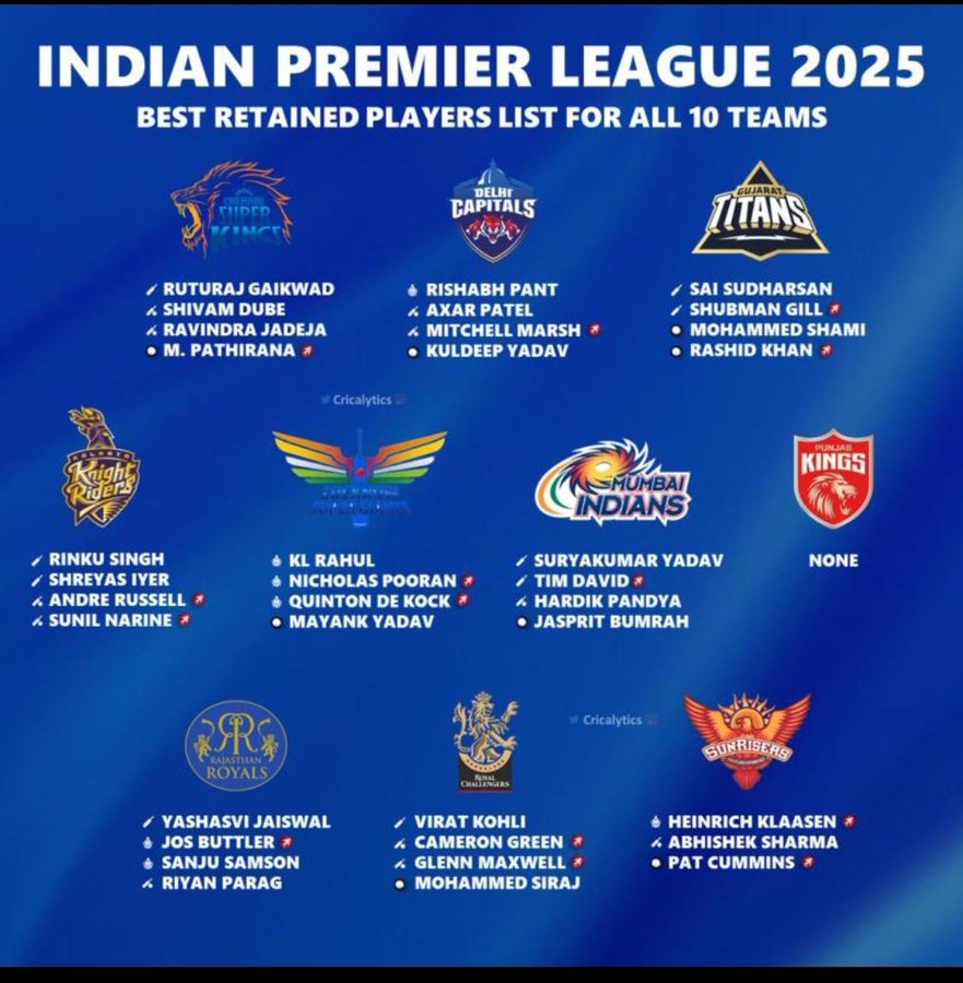 How many players can retain in IPL 2025? आईपीएल 2025 टीम के लिए कितने रिटेंशन?