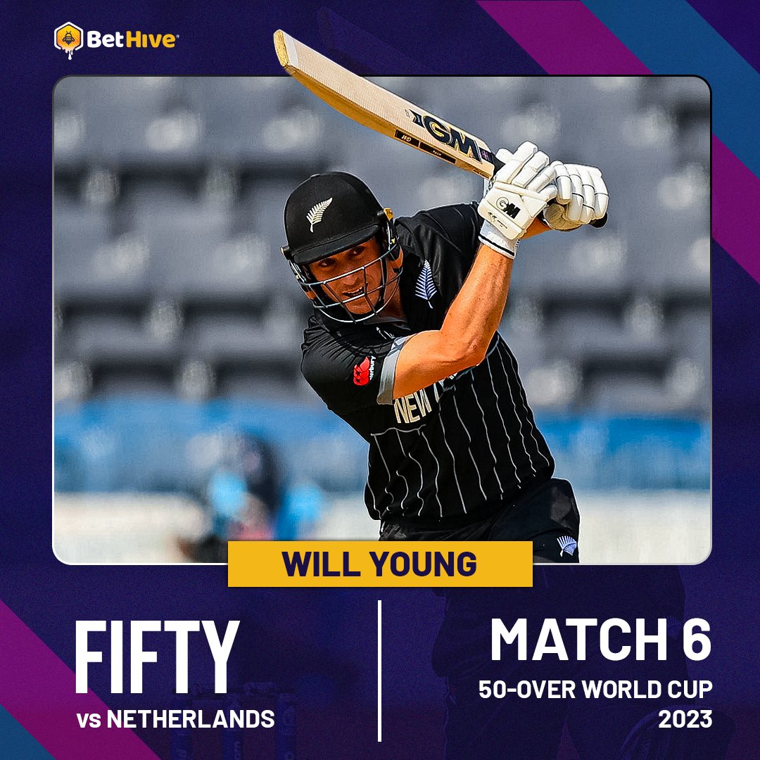 ICC World Cup 2023 NZ vs NED :New Zealand 1 विकेट के नुकसान पर 132 रन बनाये ,Will Young ने पूरा किया अर्धशतक