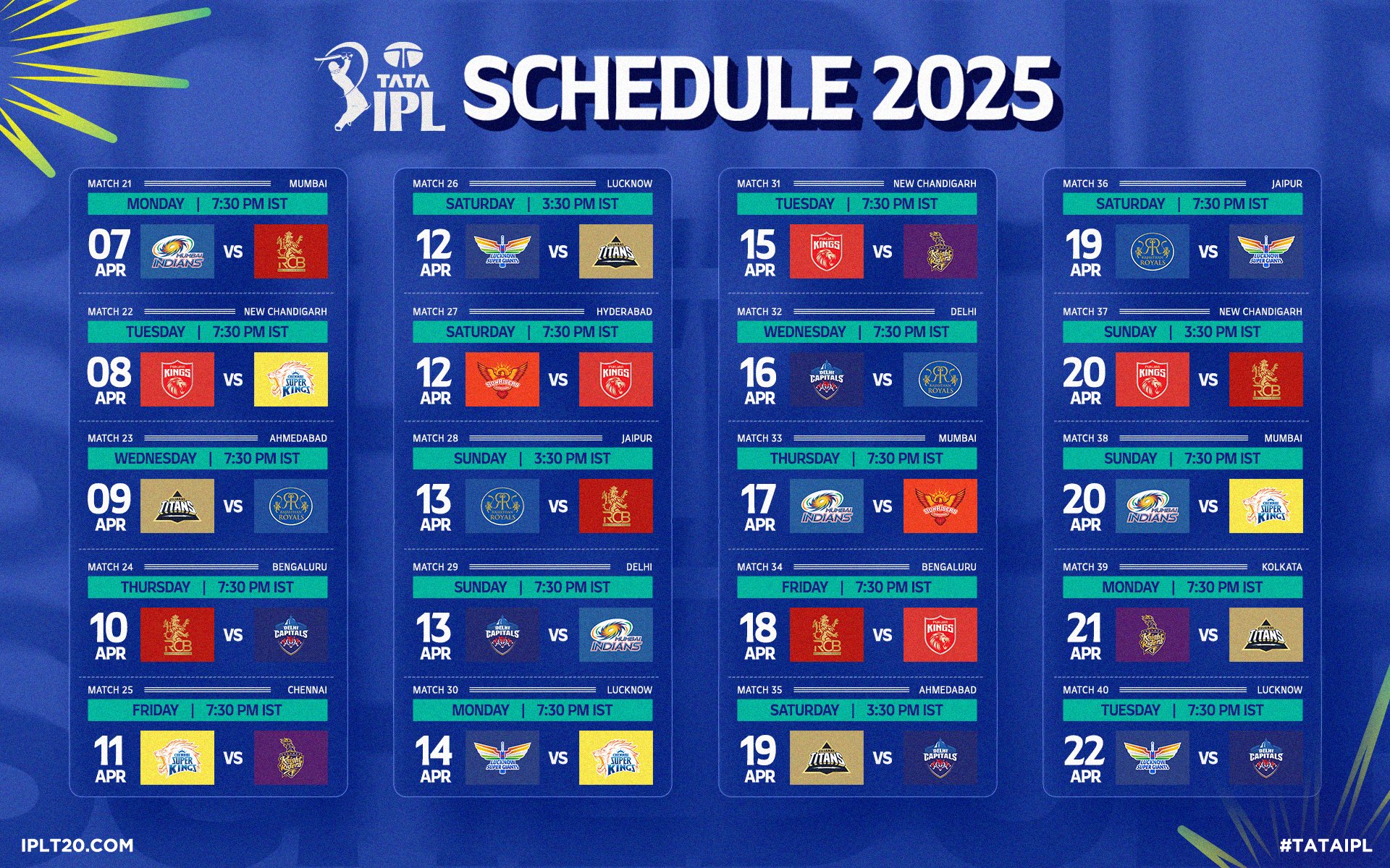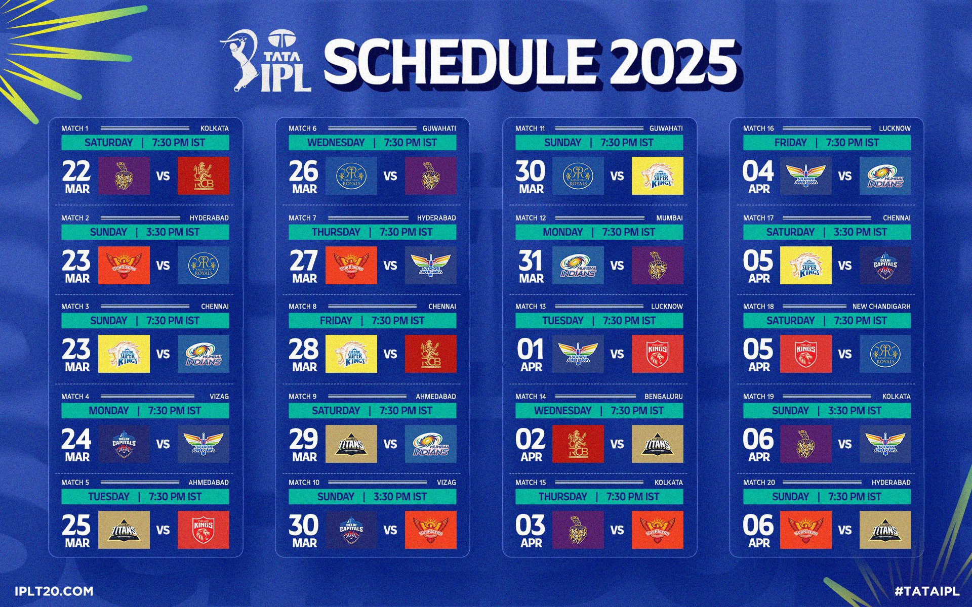 Indian Premier League schedule 2025 : इंडियन प्रीमियर लीग के शेड्यूल की घोषणा जानिए कब और किस टीम से होगा मैच