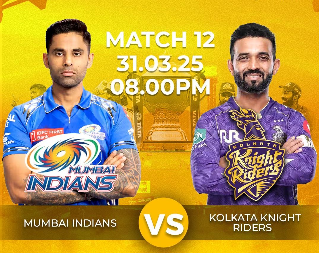 MI vs KKR, 12th Match, Indian Premier League 2025 : मुंबई इंडियंस बनाम कोलकाता नाइट राइडर्स मैच का लाइव प्रसारण कहां देखा जा सकता है?