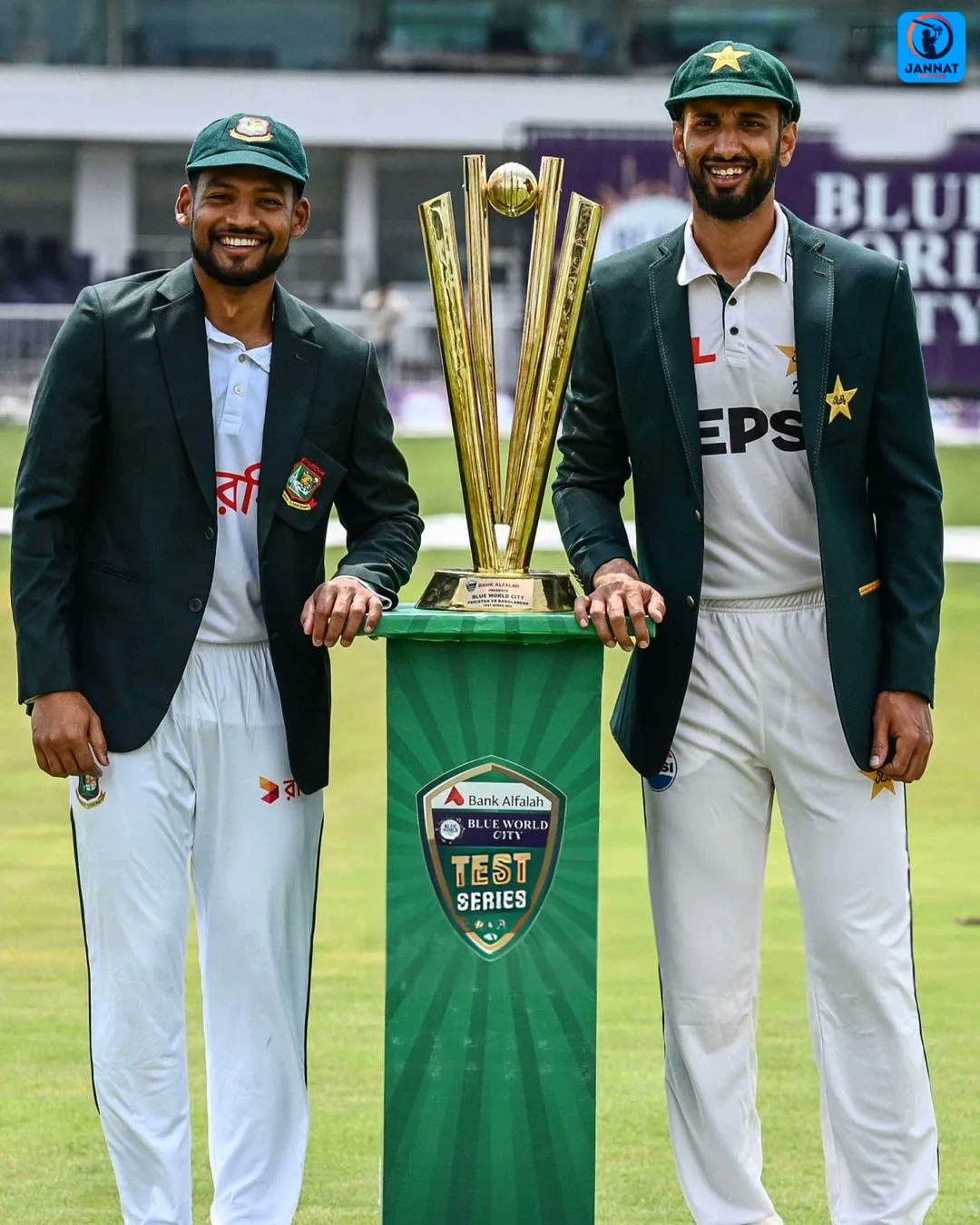 पाकिस्तान की टीम की कमान शान मसूद के हाथों में है। बाबर आज़म द्वारा कप्तानी छोड़ने के बाद उनको जिम्मा दिया गया था। दूसरी तरफ मेहमान टीम बांग्लादेश की कमान नजमुल होसैन शान्तो के पास है। शान्तो बल्लेबाजी भी अच्छी करते हैं, उनके ऊपर दोहरी जिम्मेदारी है।