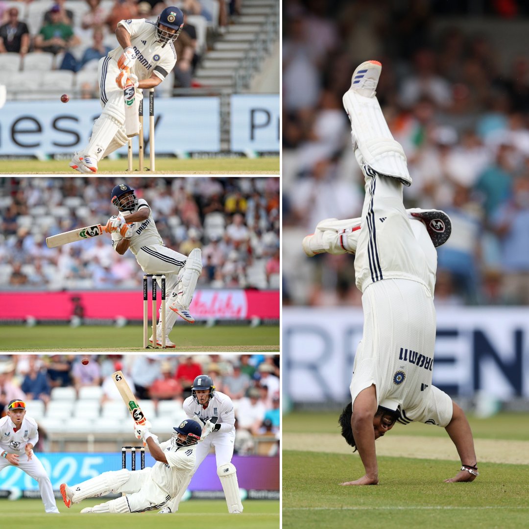 Once off-spinner Shoaib Bashir was introduced, Pant stepped on the accelerator. He welcomed Bashir with a cheeky paddle for four, followed by a powerful six over midwicket. The fireworks continued as Pant reached his hundred in flamboyant style — with a six over square leg — and celebrated with a trademark somersault. He added another maximum in the same over, which just evaded the long-off fielder’s grasp.