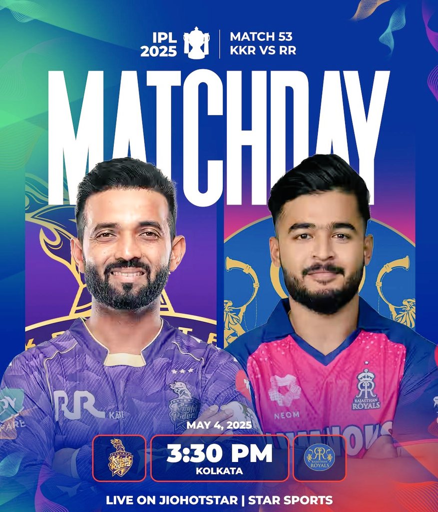 KKR vs RR, 53rd Match, Indian Premier League 2025 : प्ले ऑफ मे बने रहने के लिए कोलकाता नाइट राइडर्स के पास आज आखिरी मौका