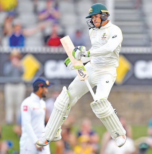 ऑस्ट्रेलियाई सलामी बल्लेबाज भी बन गए। ख्वाजा ने अपनी पारी की शुरुआत संभलकर की।पहले 15 गेंदों पर सिर्फ तीन रन बनाए और पारी के पांचवें ओवर में असिथा फर्नांडो के खिलाफ चौका लगाकर अपनी पारी को आगे बढ़ाया। 92 के स्कोर पर हेड का विकेट गंवाने के बाद उन्होंने एक छोर संभाले रखा और प्रबात जयसूर्या के खिलाफ एक रन लेकर 71 गेंदों में अपना अर्धशतक पूरा किया।