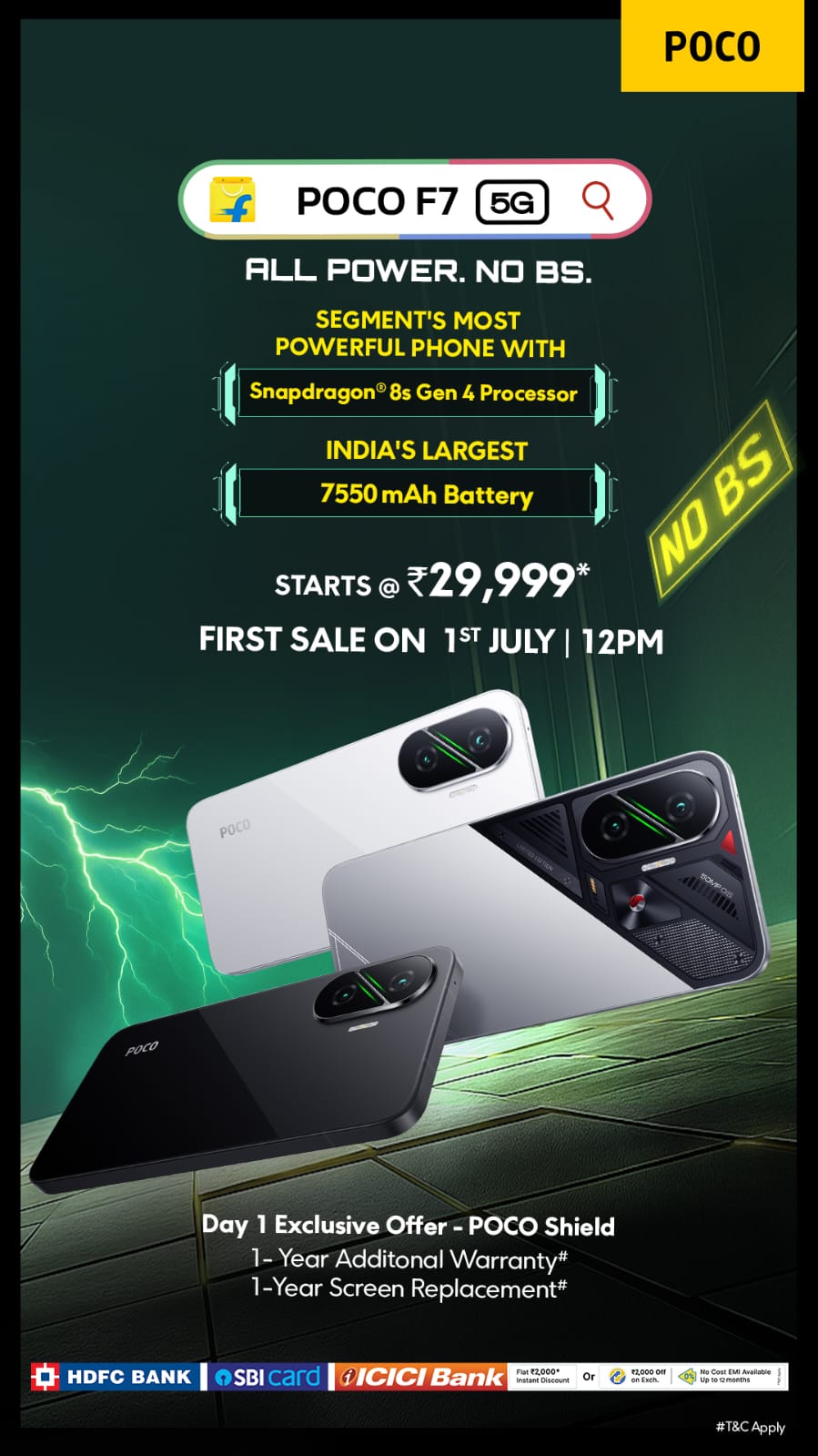 POCO F7 की बिक्री 1 जुलाई 2025 से फ्लिपकार्ट पर शुरू होगी।
